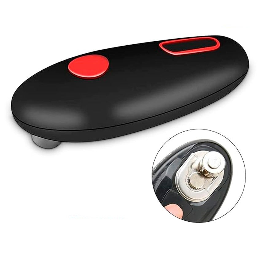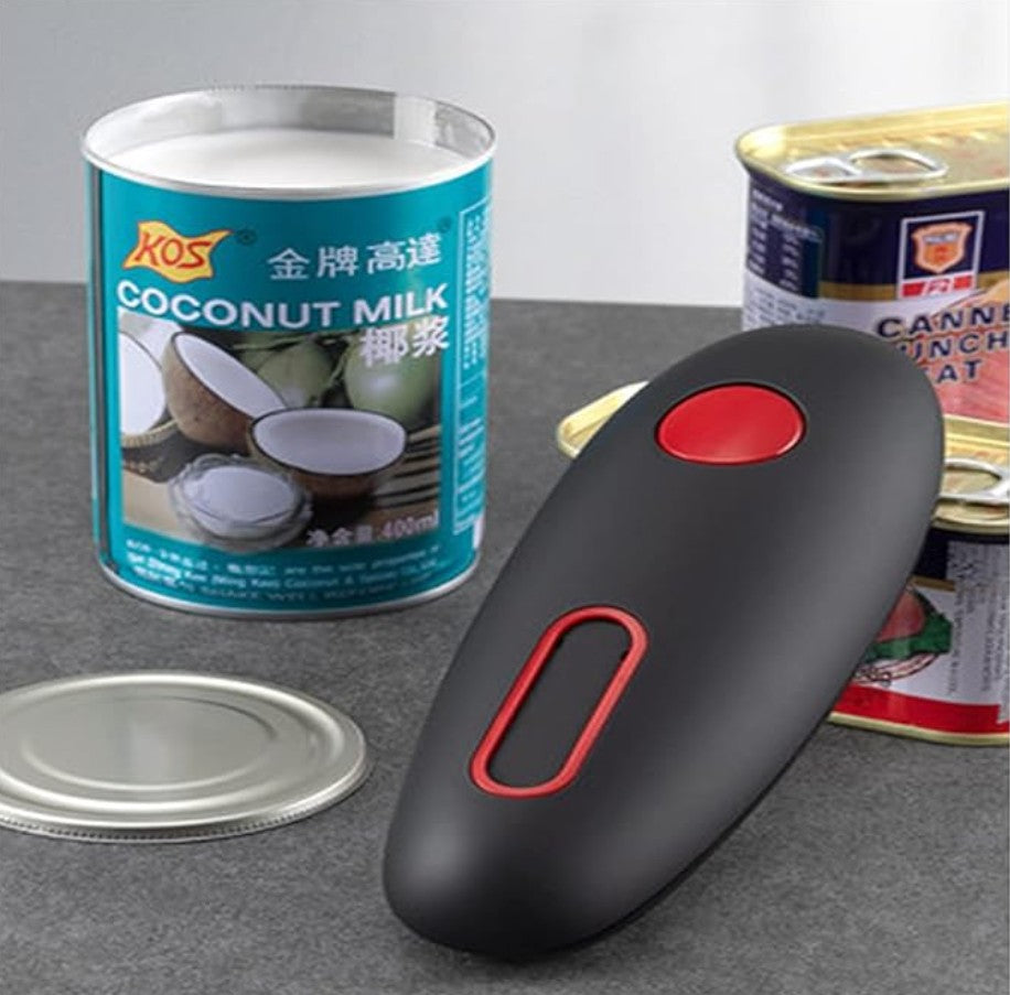 Diseñado para operar con un solo botón, solo colócalo sobre la lata, presiona y deja que haga el trabajo por ti. No necesitas aplicar fuerza ni sujetarlo mientras funciona. Además, su imán integrado sostiene la tapa para evitar desorden.