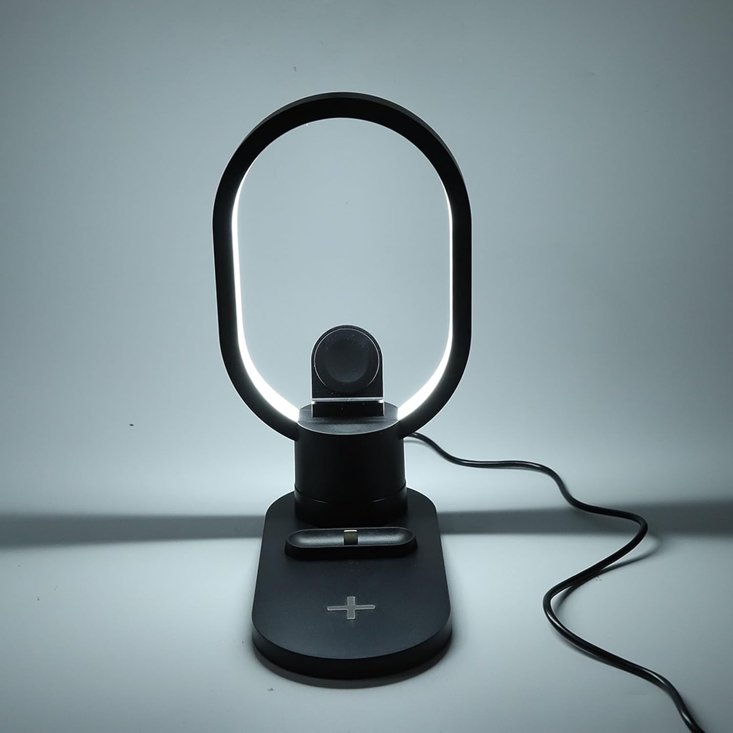 Este dispositivo reemplaza varios aparatos en uno solo. Funciona como lámpara de escritorio, luz nocturna, base decorativa y cargador. Ideal para escritorios, mesas de noche y cualquier rincón donde el estilo y la funcionalidad sean prioridad.